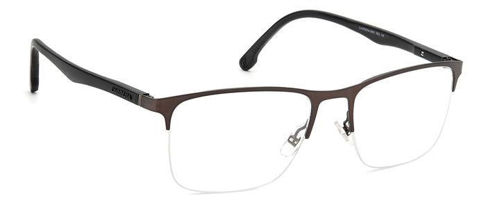 La competenza tecnica e un’estetica distintiva Carrera si affiancano in questi occhiali da vista da uomo. Il design a doppia iniezione è un vero statement di stile moderno, grazie al profilo rettangolare senza montatura. Gli inserti in gomma Megol sui naselli e nella parte centrale interna delle aste ottimizzano l’aderenza e il comfort, mentre le cerniere flessibili integrate garantiscono un fit sicuro e di supporto.