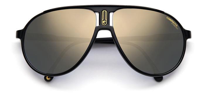 Presentati in occasione del 65° anniversario di Carrera, questi occhiali da sole aggiornano la silhouette iconica con dettagli contemporanei, per un look radicato nel passato ma proiettato nel futuro. Il profilo aviator a mascherina è realizzato in Optyl, ultraleggero e resistente, e impreziosito da inserti in metallo lungo la barra centrale e dall’iconica C fieramente posizionata sul fronte al centro. Il logo lettering del brand lungo entrambe le aste e sulla lente sinistra li rende ancora più degni di nota.