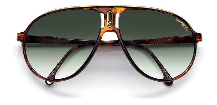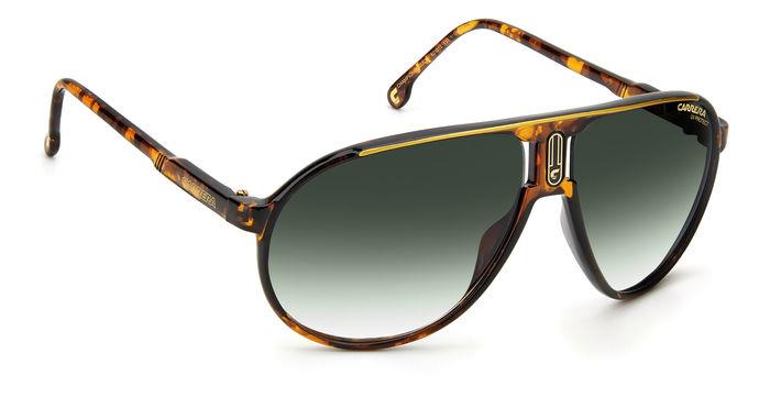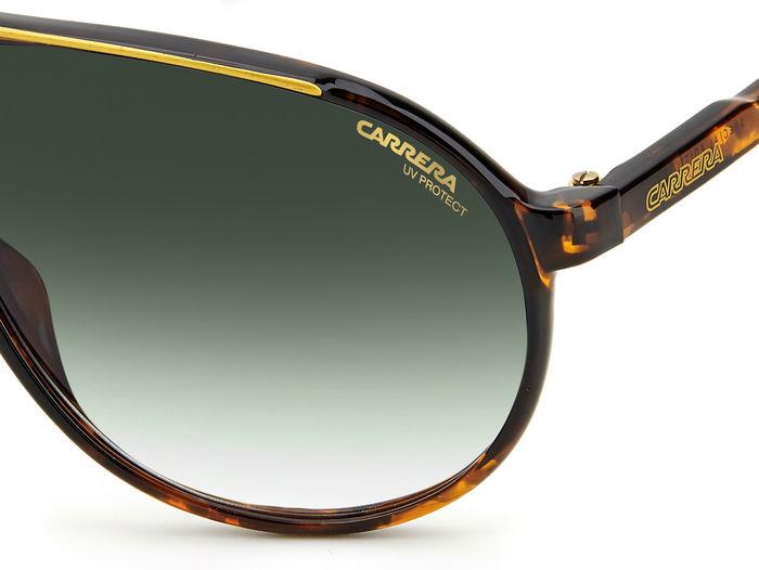 Presentati in occasione del 65° anniversario di Carrera, questi occhiali da sole aggiornano la silhouette iconica con dettagli contemporanei, per un look radicato nel passato ma proiettato nel futuro. Il profilo aviator a mascherina è realizzato in Optyl, ultraleggero e resistente, e impreziosito da inserti in metallo lungo la barra centrale e dall’iconica C fieramente posizionata sul fronte al centro. Il logo lettering del brand lungo entrambe le aste e sulla lente sinistra li rende ancora più degni di nota.