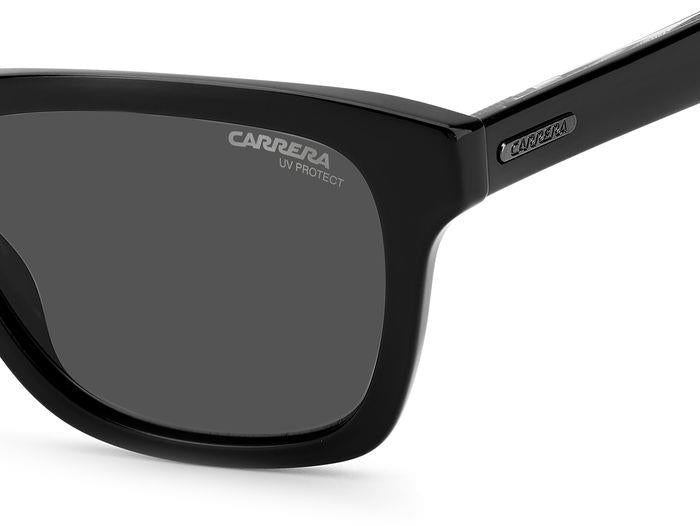 Ispirati alle autentiche montature vintage, questi occhiali da sole da uomo aggiornano la classica silhouette squadrata con un tocco sportivo. La robusta costruzione in acetato amplifica la forma e la texture della montatura rettangolare, mentre i dettagli logati Carrera e l’inconfondibile anima in metallo, visibile all’interno delle aste, completano il design con un’intrigante nota di carattere.