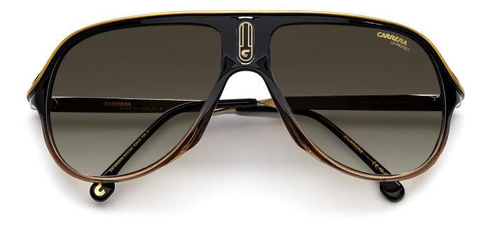 Parte della collezione che celebra il 65° anniversario di Carrera, questi occhiali da sole unisex reinterpretano un design iconico del brand. Il profilo rettangolare oversize è realizzato in acetato ed evidenziato da un’audace barra centrale che ne accentua il mood sportivo e contemporaneo. La caratteristica ‘C’, fieramente posizionata al centro del frontale, e il logo lettering lungo le aste rendono il modello immediatamente riconoscibile dai fan e gli appassionati di stile.