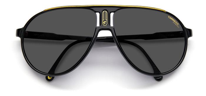 Presentati in occasione del 65° anniversario di Carrera, questi occhiali da sole aggiornano la silhouette iconica con dettagli contemporanei, per un look radicato nel passato ma proiettato nel futuro. Il profilo aviator è scolpito in leggera poliammide stampata a iniezione e impreziosito da inserti in metallo lungo la barra centrale e dall’iconica ‘C’ fieramente posizionata sul fronte al centro. Il logo lettering del brand sulle aste e la lente sinistra rende il modello ancora più desiderabile.
