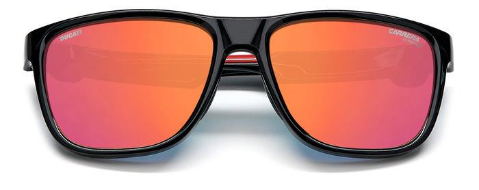 Massime prestazioni e stile senza pari – questi occhiali da sole da uomo della collezione Carrera | Ducati celebrano le passioni condivise dai due iconici brand sportivi. La grande montatura rettangolare è abbinata alle aste ergonomiche ispirate all’inimitabile Ducati Panigale, corredate di inserti in gomma e pannelli antiscivolo interni, che assicurano comfort e stabilità ottimali. Il modello offre una vestibilità perfetta sotto al casco da moto ed è rifinito con tocchi personalizzati Carrera e Ducati.
