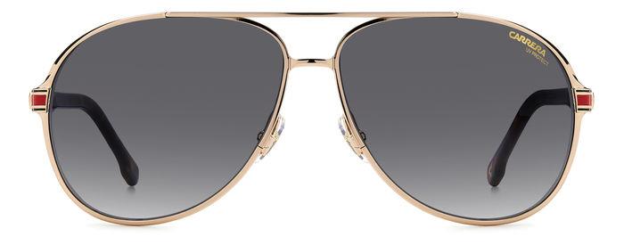 Una reinterpretazione giovane del classico look Carrera. Questi occhiali da sole unisex richiamano i design storici d’archivio, con la loro elegante forma rettangolare a goccia e l’audace doppio ponte. La leggera montatura in metallo crea un dinamico contrasto con le aste robuste stampate a iniezione, evidenziate da dettagli logati e dalla caratteristica bandiera Carrera – declinata in varie combinazioni colore, compreso l'iconico mix di rosso, nero e oro. A completare il modello lenti sfumate e polarizzate.