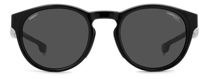 L'incontro tra innovazione e stile. Questi occhiali da sole da uomo aggiungono alla classica montatura tonda un twist sportivo. La costruzione leggera è caratterizzata da inserti in gomma e terminali antiscivolo a garantire il massimo comfort, mentre i dinamici dettagli logati amplificano il fattore cool. Le lenti polarizzate verdi assicurano una nitidezza eccezionale. Il modello offre una vestibilità perfetta sotto al casco da moto ed è rifinito con tocchi personalizzati Carrera e Ducati.