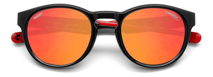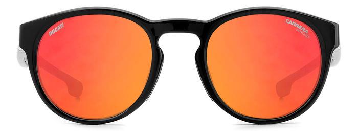 L'incontro tra innovazione e stile. Questi occhiali da sole da uomo aggiungono alla classica montatura tonda un twist sportivo. La costruzione leggera è caratterizzata da inserti in gomma e terminali antiscivolo a garantire il massimo comfort, mentre i dinamici dettagli logati amplificano il fattore cool. Le lenti polarizzate verdi assicurano una nitidezza eccezionale. Il modello offre una vestibilità perfetta sotto al casco da moto ed è rifinito con tocchi personalizzati Carrera e Ducati.