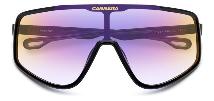 Occhiali da sole Carrera in edizione speciale dedicata ai festival musicali. Impossibile distogliere lo sguardo dalla maxi-lente a maschera iridescente, perfetta per le atmosfere magiche di questi eventi. Le aste leggermente piegate sono realizzate con la tecnica della bi-iniezione, gli inserti in gomma ricreano la flag Carrera. Sul lato interno appare la dicitura “Festival Edition”. I terminali forati si ispirano al mondo active, mentre i loghi Carrera assicurano un posto nell’Olimpo della moda.